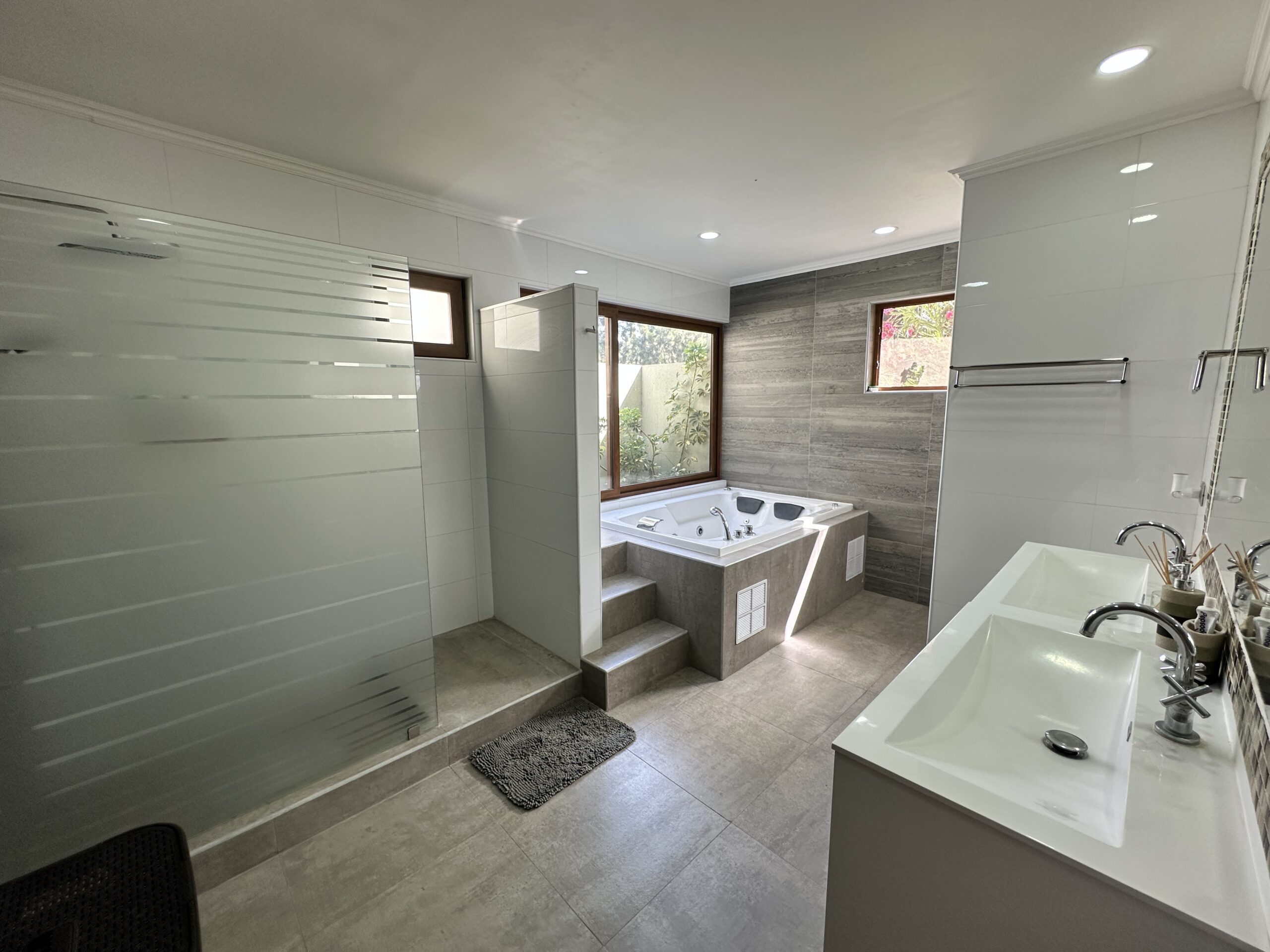 Dormitorio principal en suite con gran iluminación, walk-in clóset, jacuzzi y pie de ducha