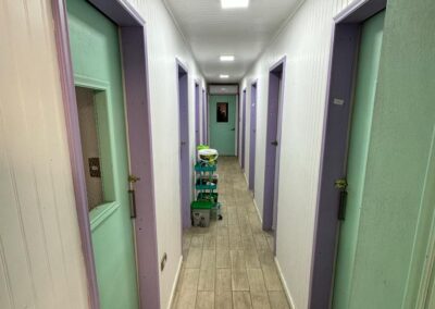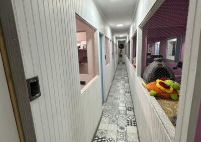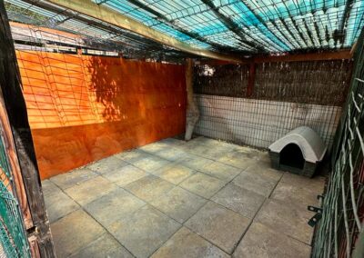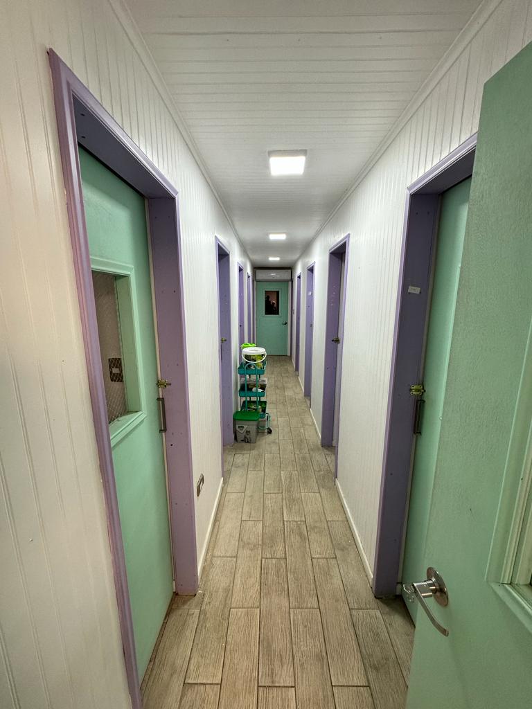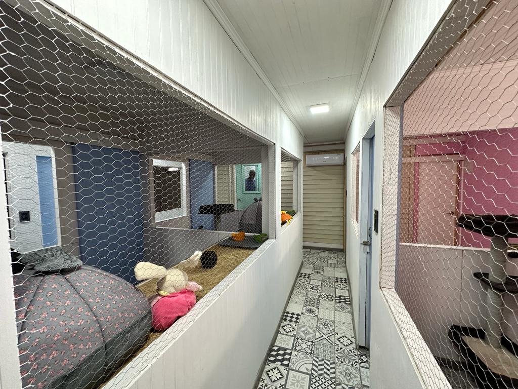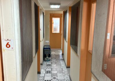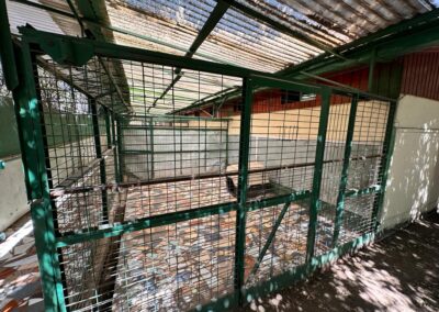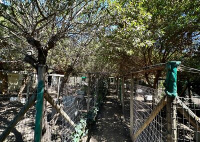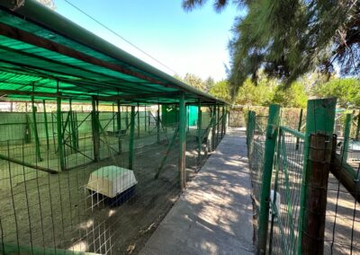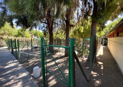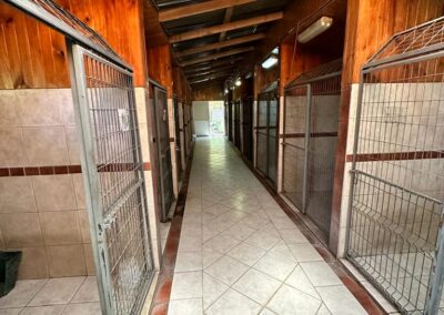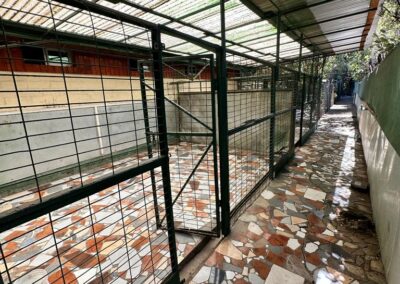 Capacidad para recibir 100 perros: 85 jardines (3 filas techadas) más 8 patios de alta seguridad techados.