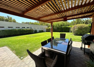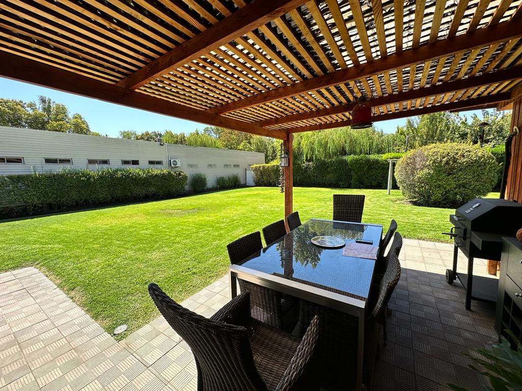 Alarma, antejardín, comedor de diario, despensa, escritorio, lavadero exterior, lavadero interior, patio de servicio, terraza con techo, cocina amoblada, portón automático, aire acondicionado, riego automatico, cables de electricidad bajo tierra, pozo, bombas de agua, telefono, urbanizacón.